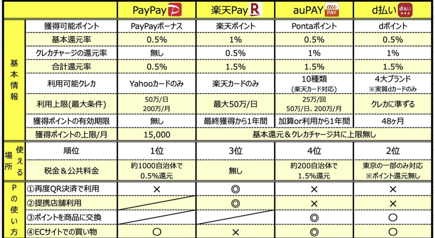 【クレカは損】PayPay/楽天Pay/auPAY/d払い【どれが正解?】