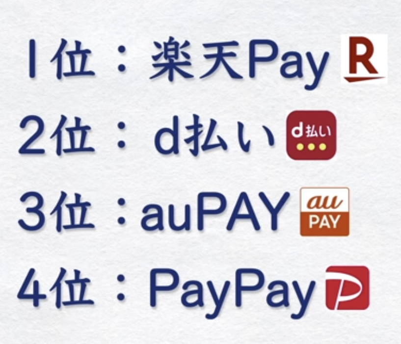 1位:楽天Pay、2位:d払い、3位:au PAY、4位:PayPay