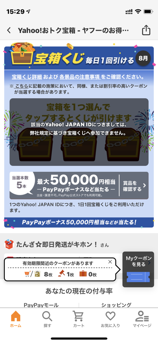 「該当のYahoo! JAPAN IDにつきましては、弊社規定に基づき宝箱くじへ参加できません。」