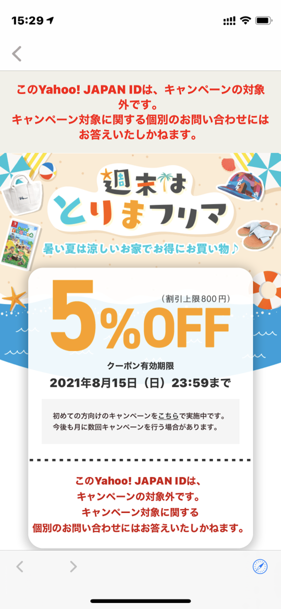 「このYahoo! JAPAN IDは、キャンペーンの対象外です。キャンペーン対象に関する個別のお問い合わせにはお答えいたしかねます。」
