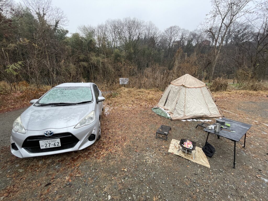 山間の武甲キャンプ場は、12月ともなると夜は氷点下に。