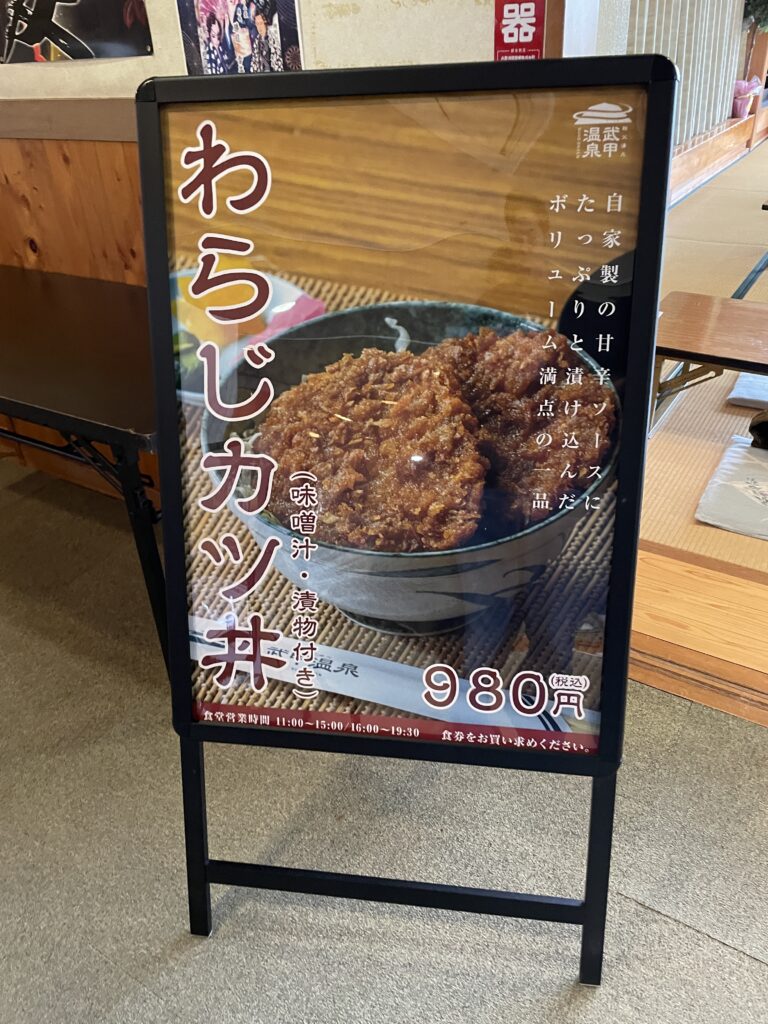 撤収後は武甲温泉内の食堂で、秩父名物の「わらじカツ丼」と「せいろそば」を昼食に。