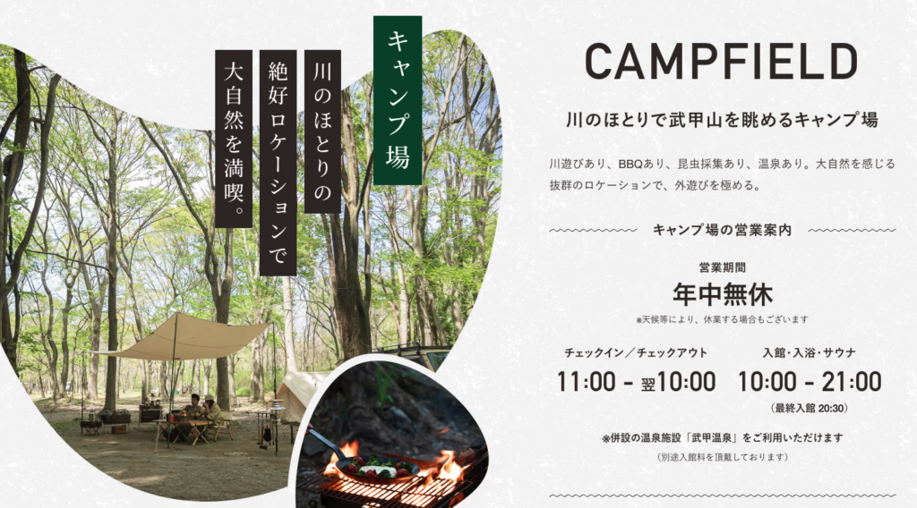 設備が整っていて、アクセスしやすく、安心感のあるキャンプ場。そう考えたとき、一番に思い浮かんだのが武甲キャンプ場でした。